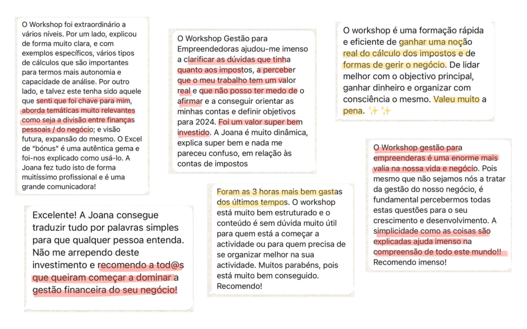 Tudo o que vais aprender no workshop podes aplicar assim que começares o teu negócio, mesmo que ainda não o tenhas. Será uma oportunidade de ganhares já a visão de gestora e aplicares desde o início tudo o que vais aprender.